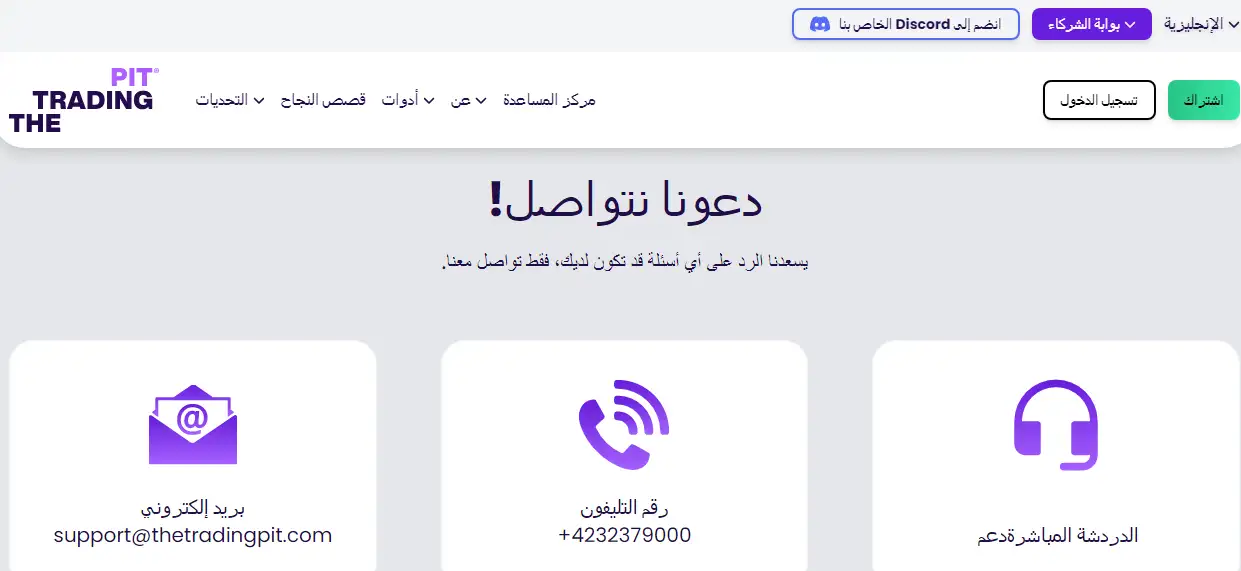 - البريد الإلكتروني للدعم: support@thetradingpit.com